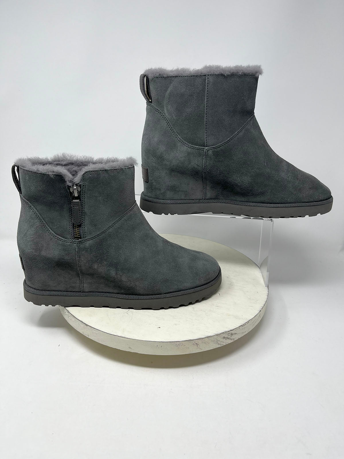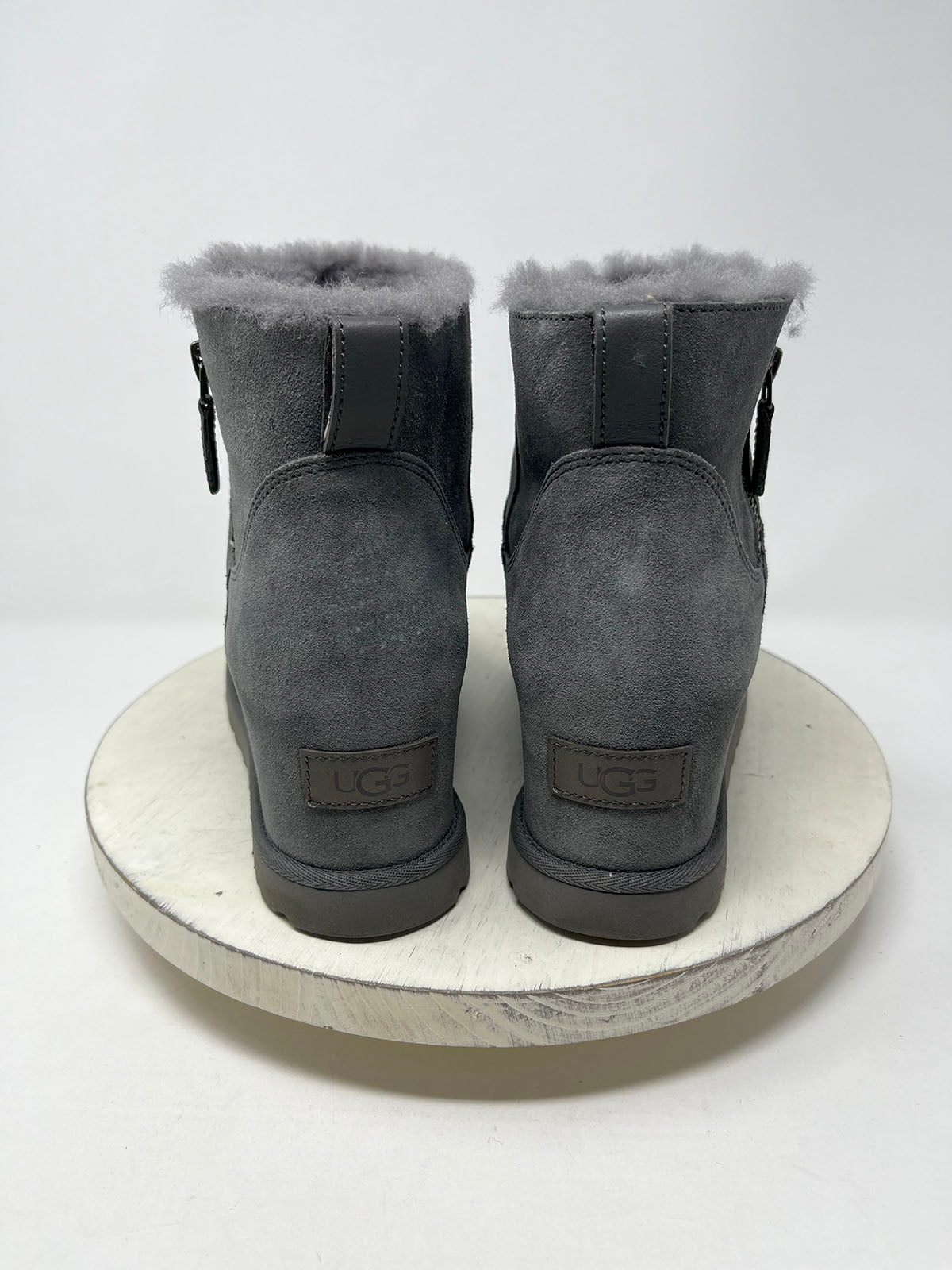 Ugg Size 10 Gray Suede Shearling Wedge Boots