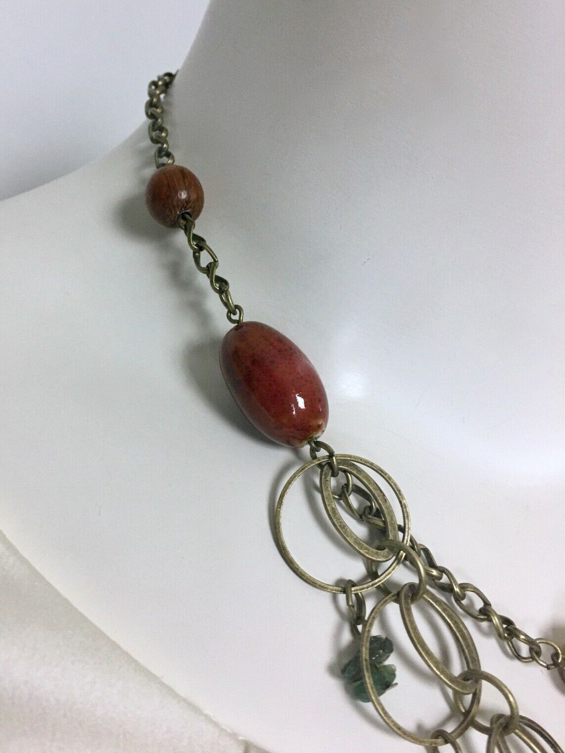 Chico's Bronze & Green Stone Bead Chain-Link Boho Necklace
