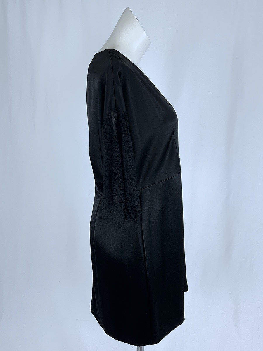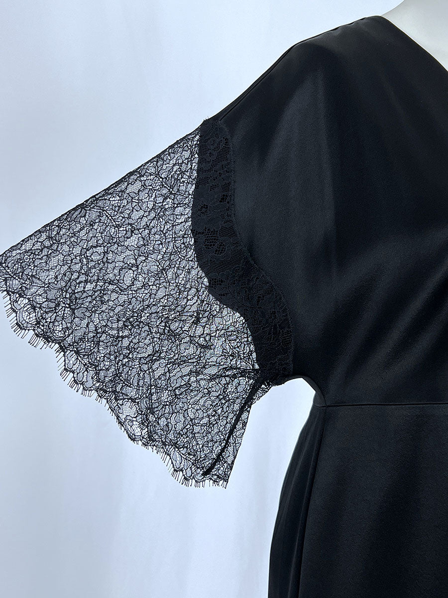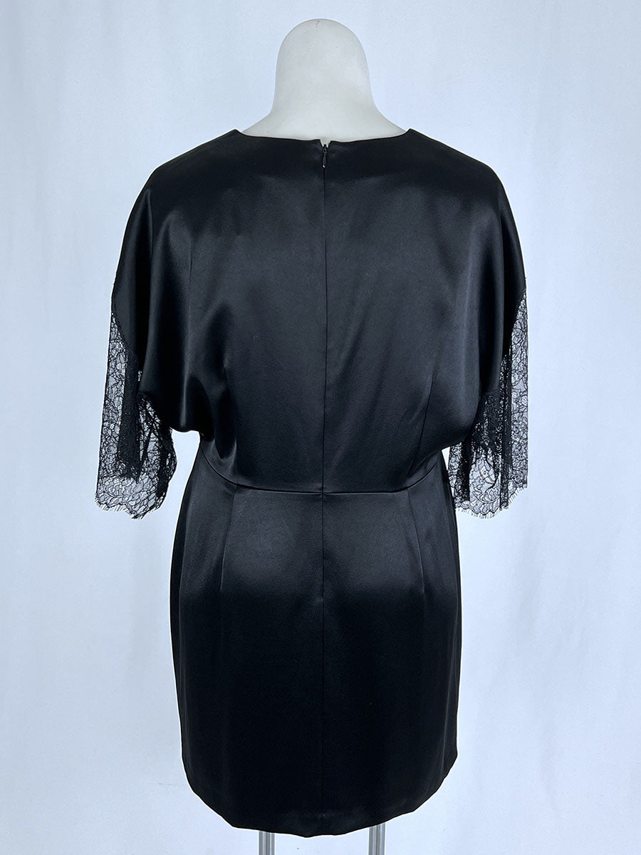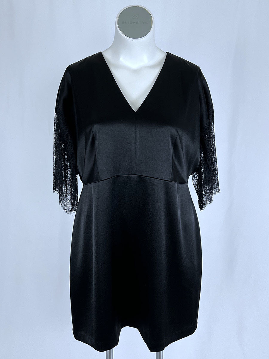NWT - UNWORN - Original Tags - Kyra Dress with Lace" style; V-neck, short eyelash lace sleeves, zip-back