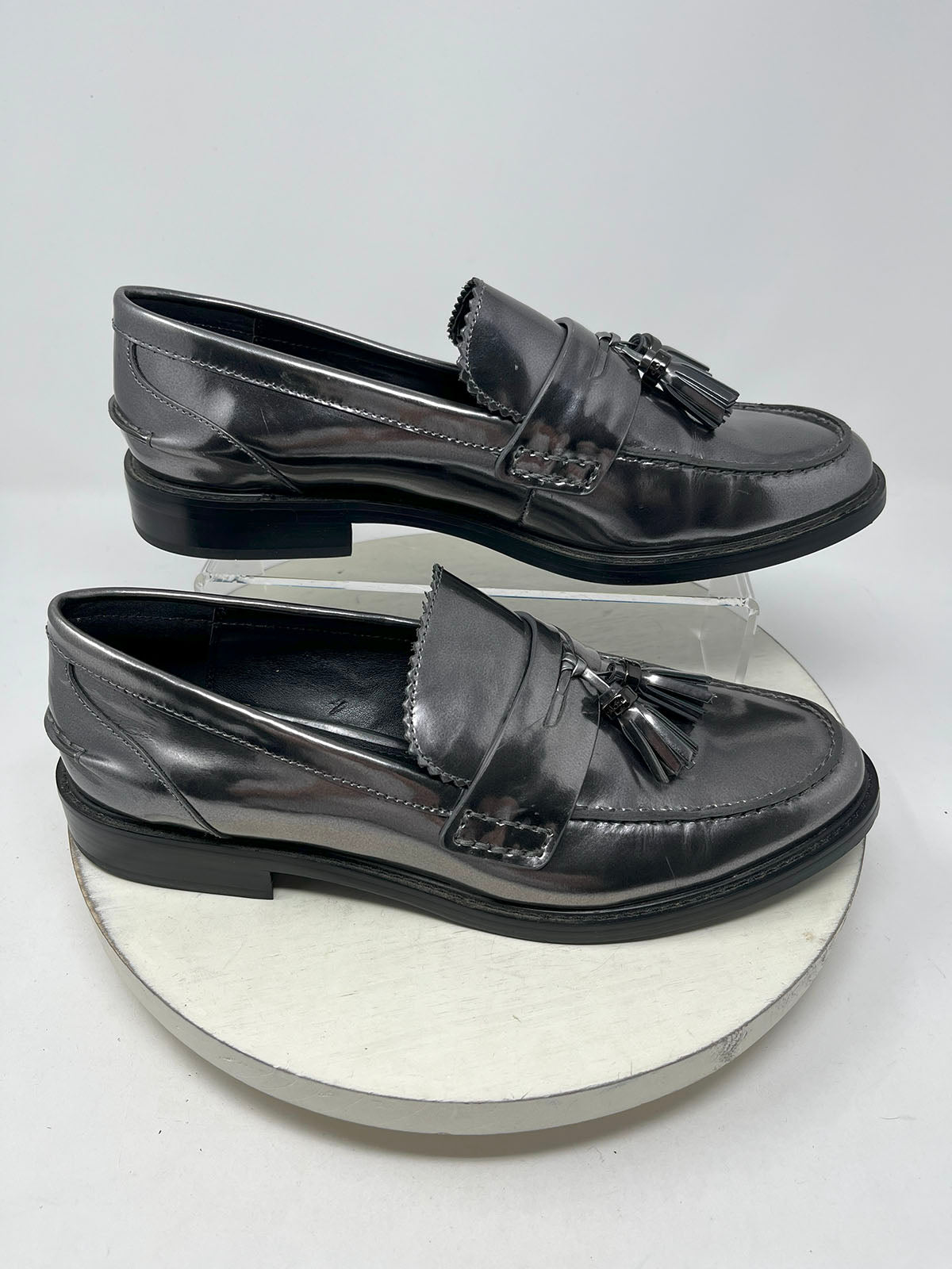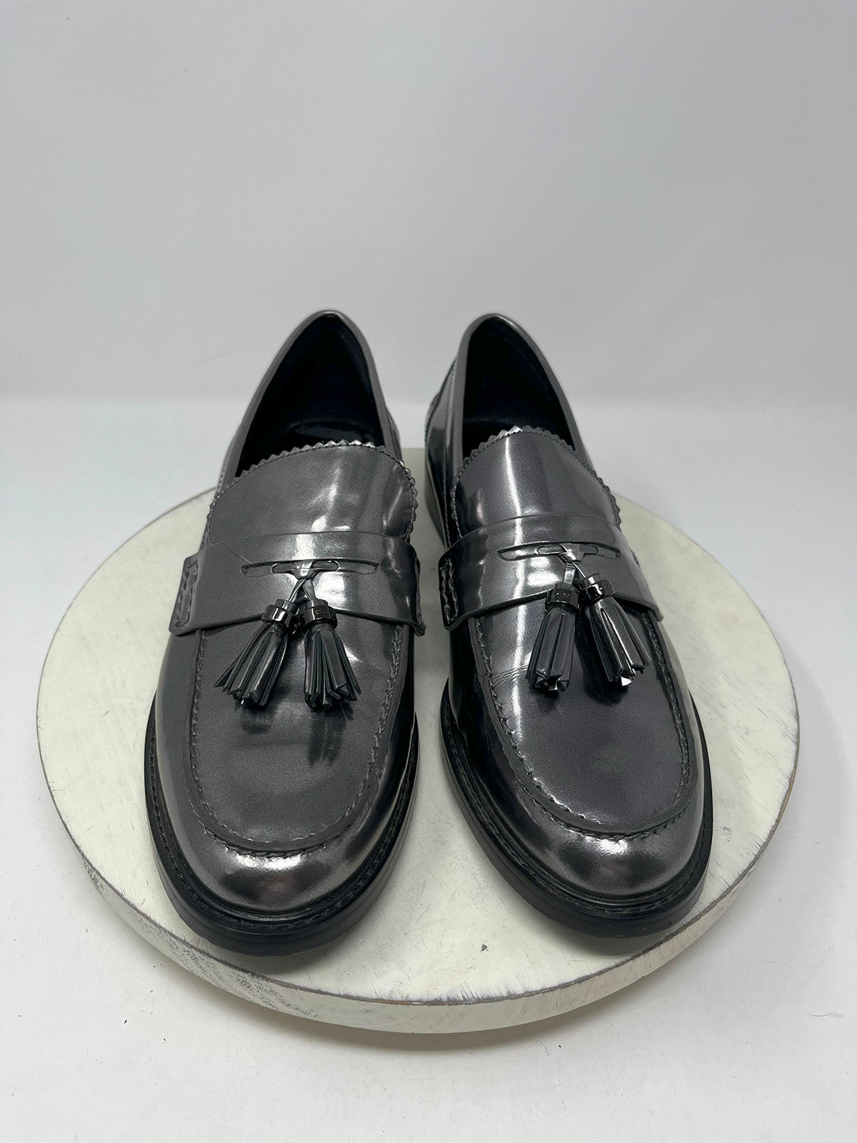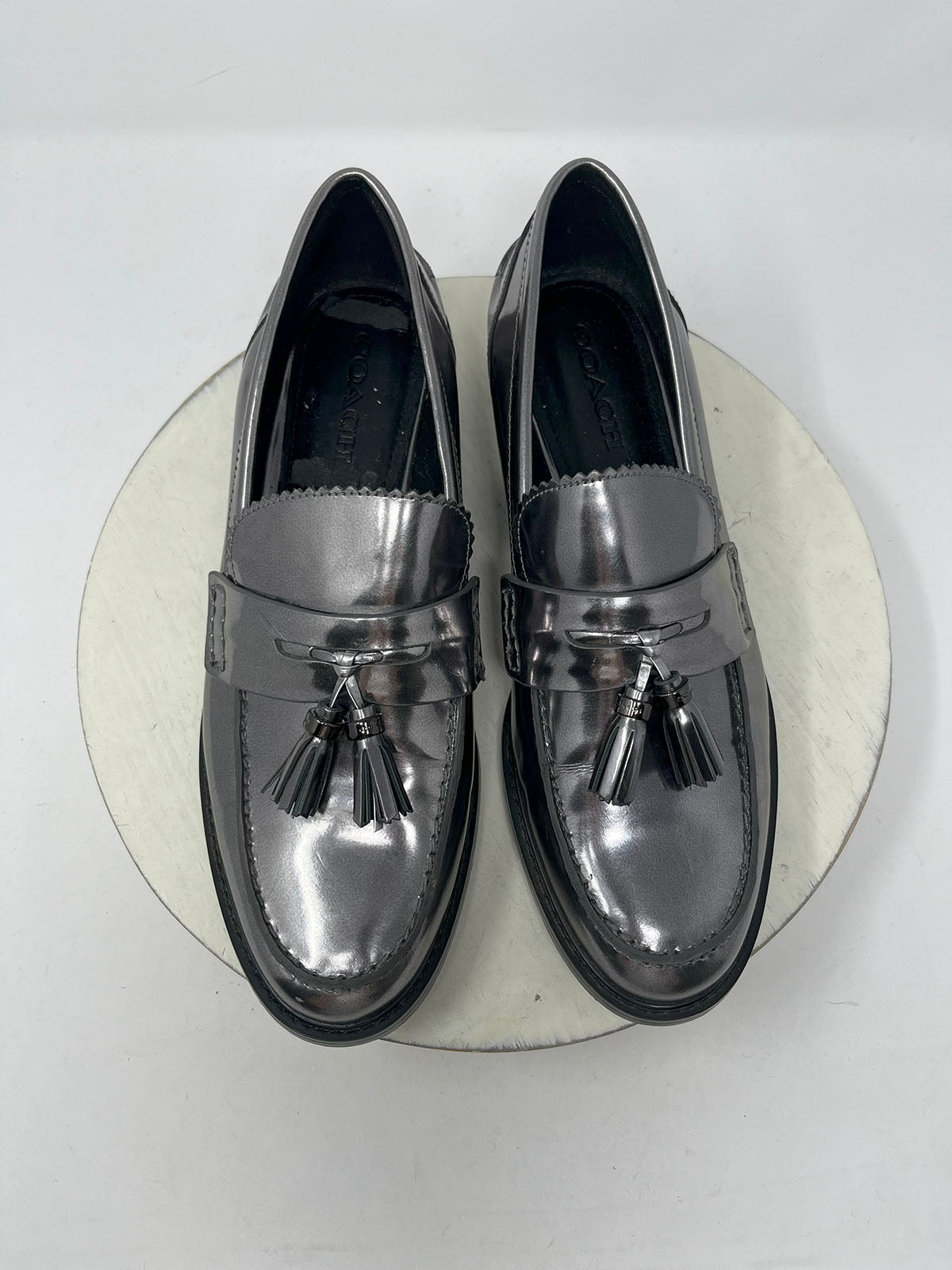 Coach Size 11 Pewter Patent Tassel Loafers