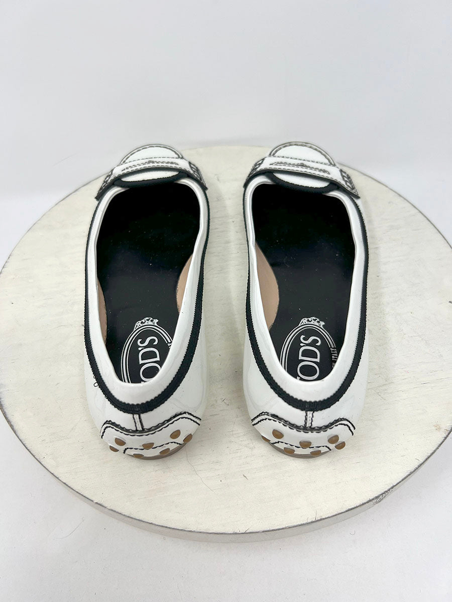 Tods Size EU 38/ US8 White & Black Penny Loafers