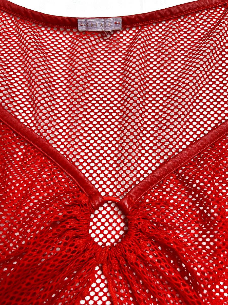 2 piece Goji Berry Red Glossy Flossy Fishnet Sleep Top + Half Slip by Savage x Fenty by Rihanna