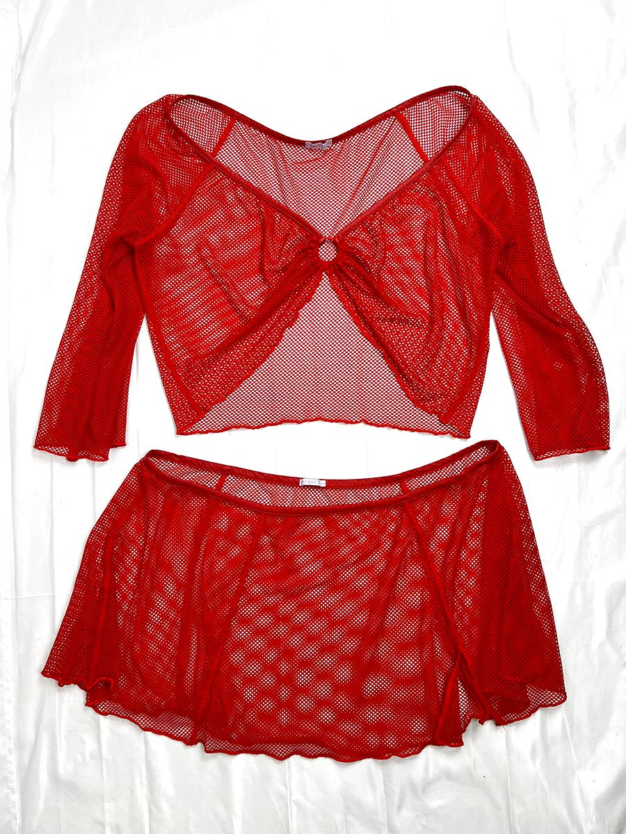 Savage x Fenty Size 2X Red Fishnet Skirt Set
