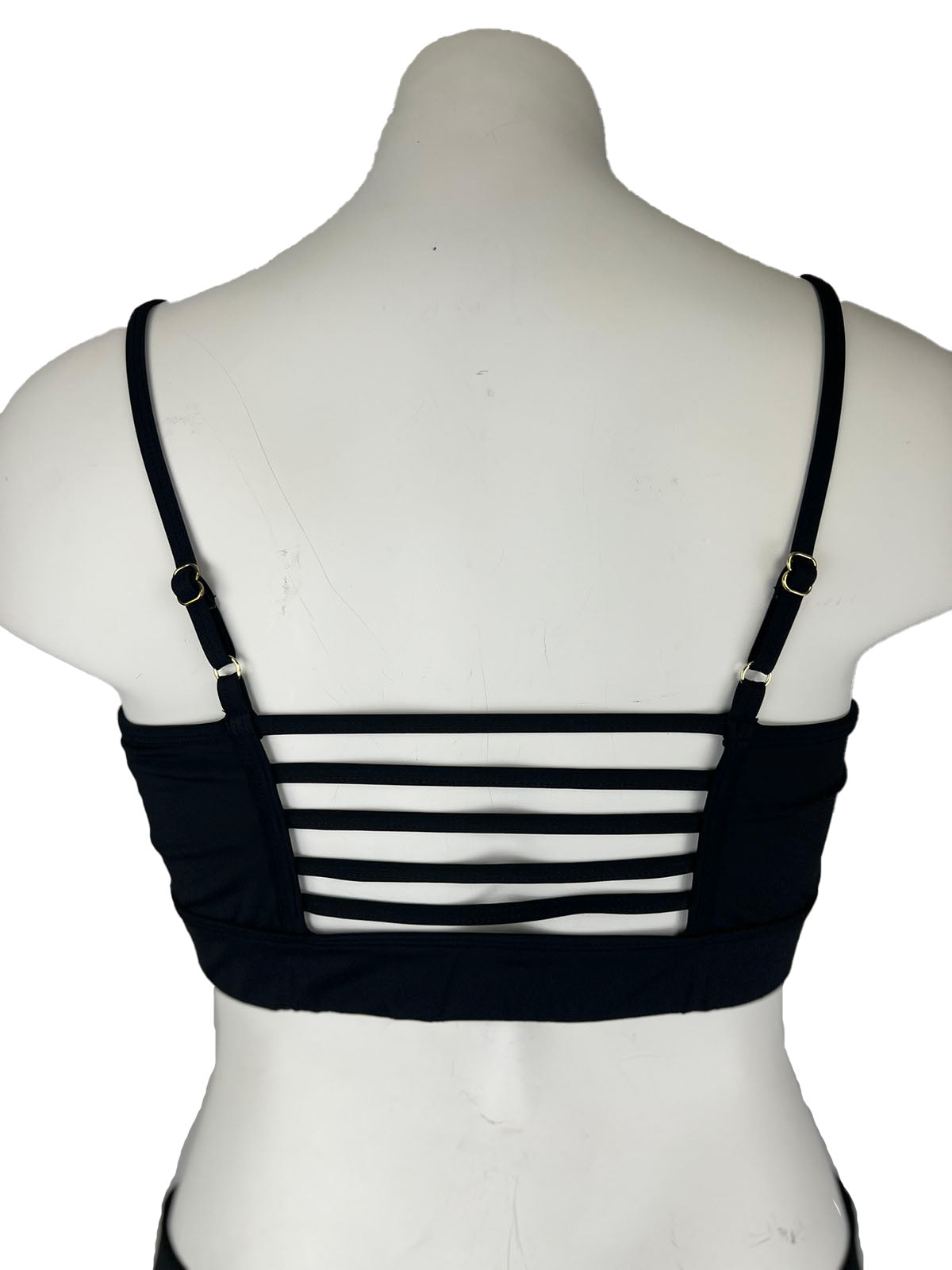 Bikini / Bralette Swim top with multiple cage straps in back. Adjustable length spaghetti straps.