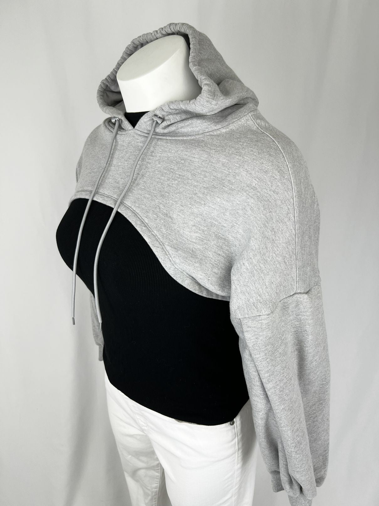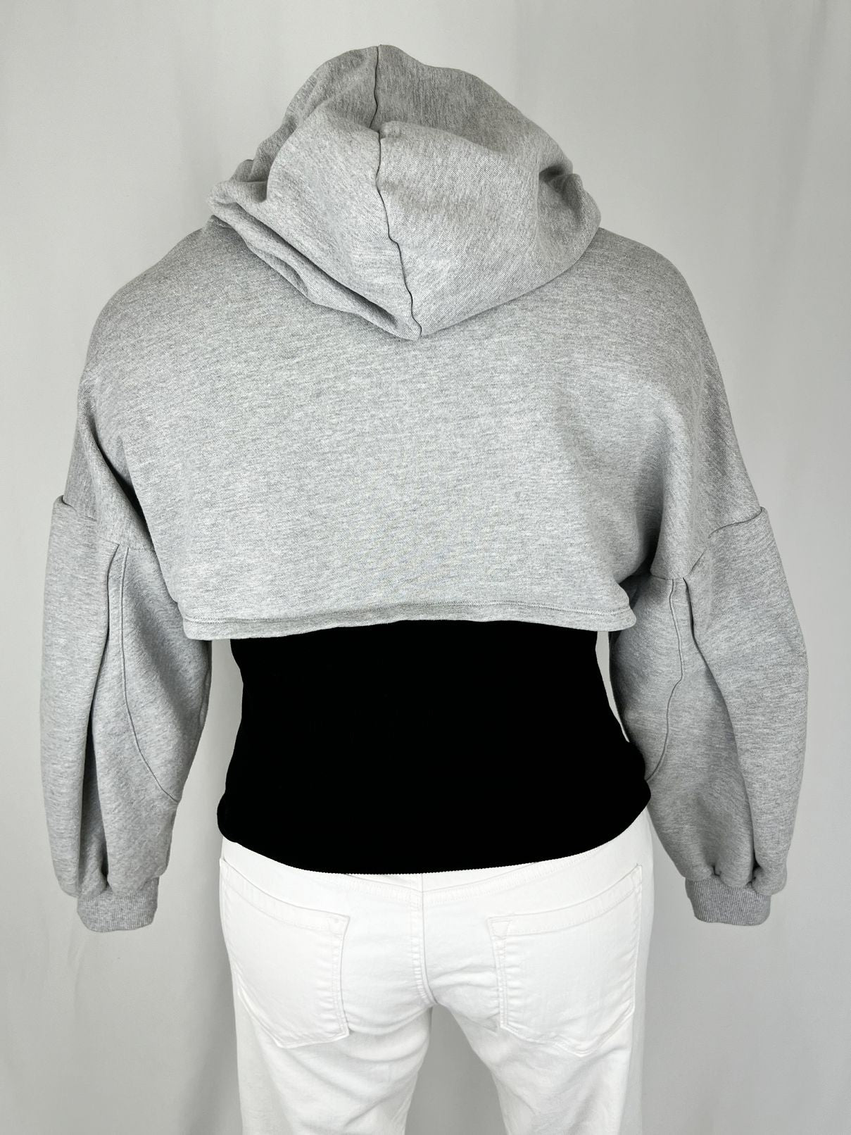 Pull-over ultra crop hoodie. Pleated / puff-sleeves.