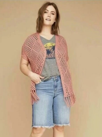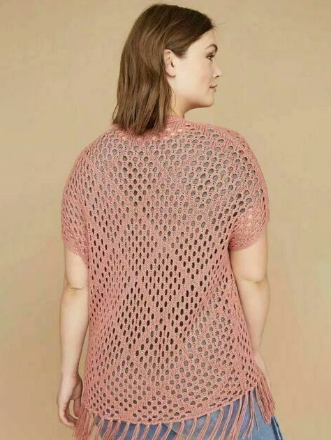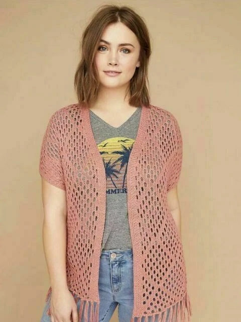 NWT - Original Tags - Crochet Fringed Open-Front Sweater - Box-cut with fringed hem, the open weave knit sweater is perfect to throw over a dress or t-shirt!
