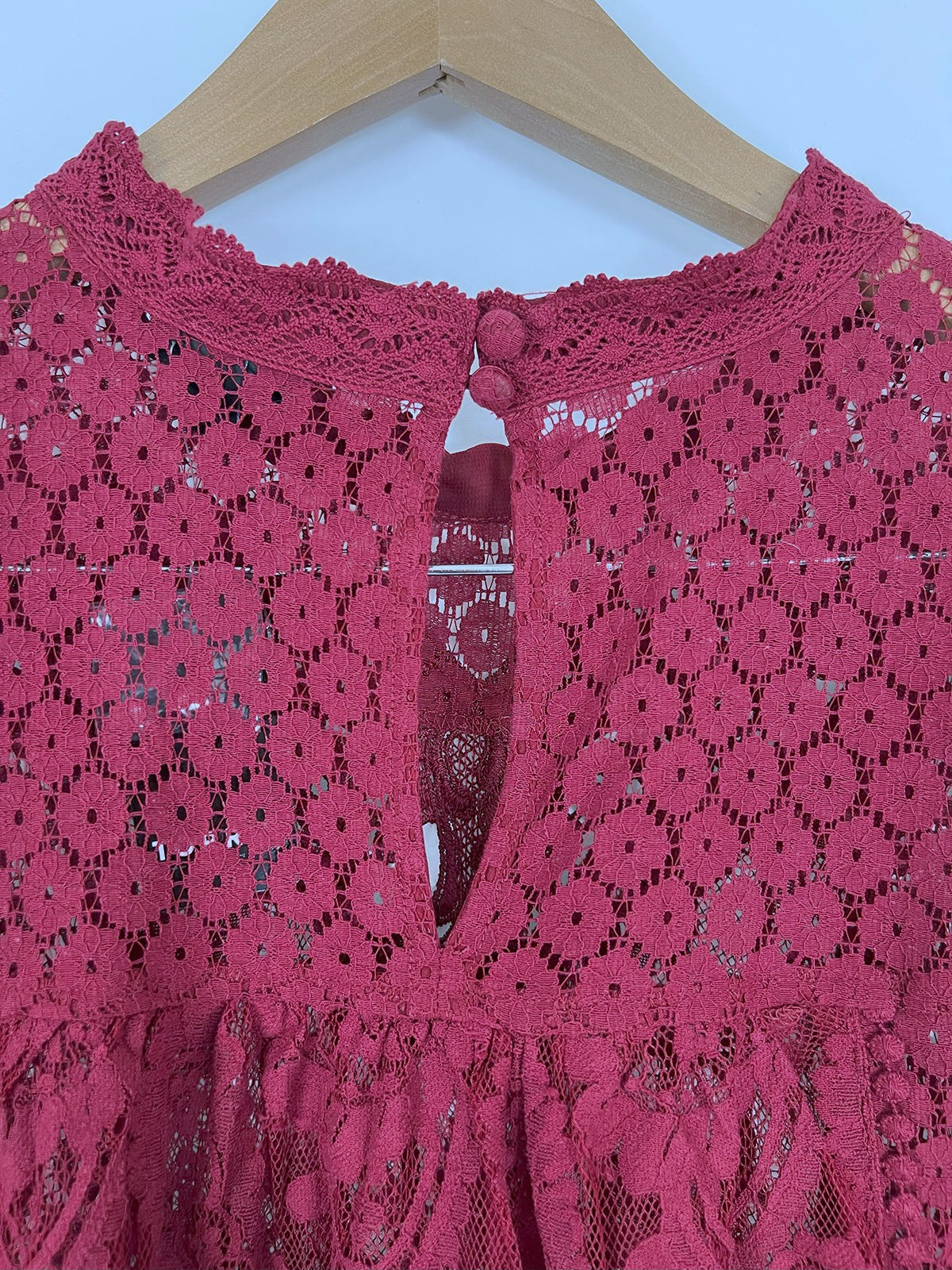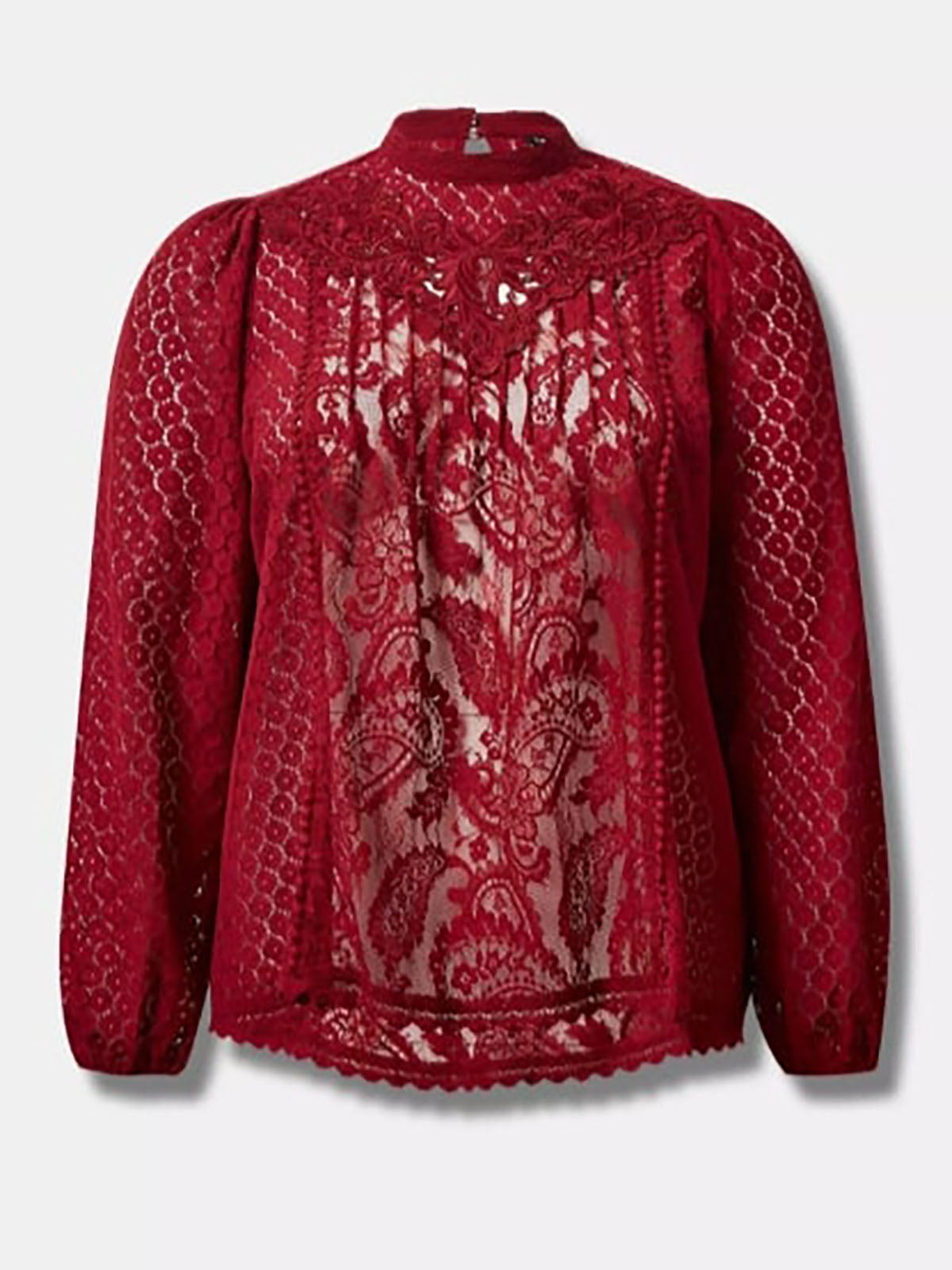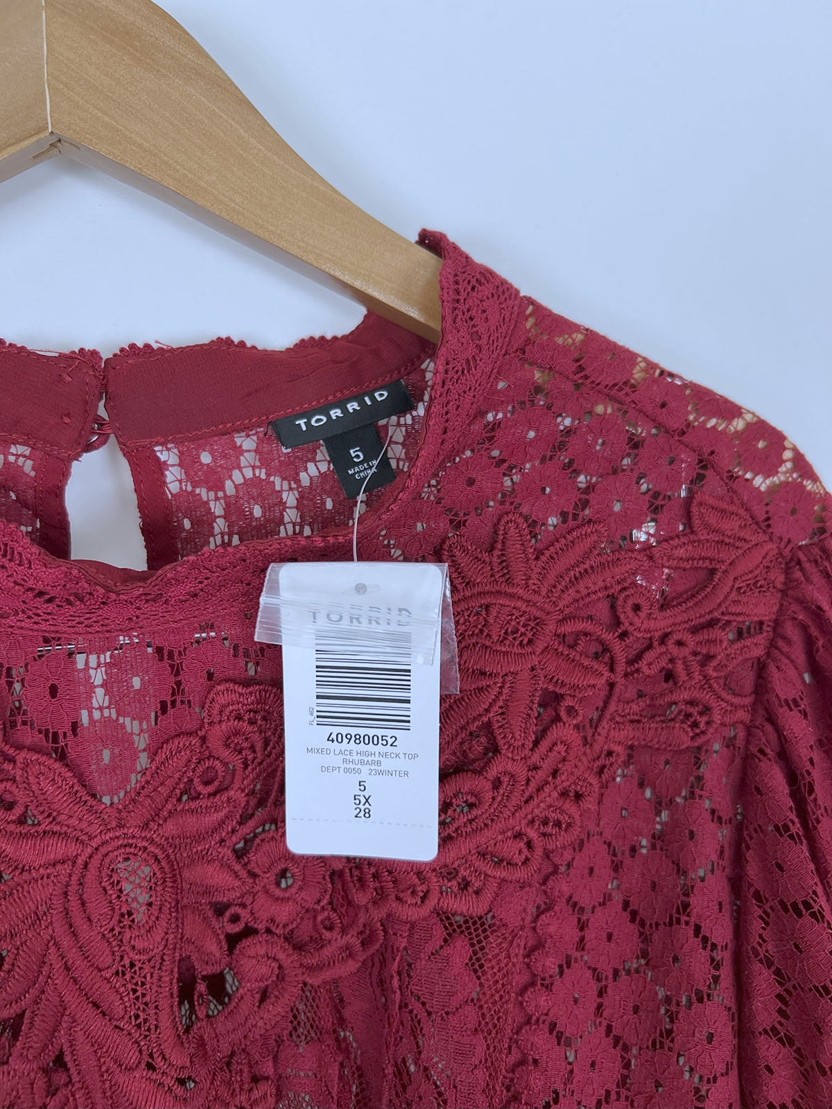 Torrid Size 5X (28) Burgundy Lace Shirt NWT
