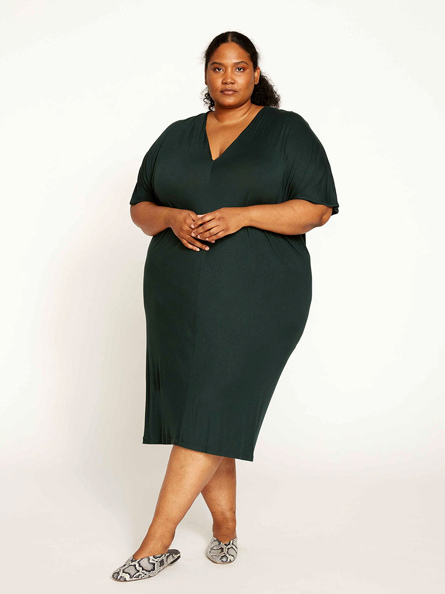 "Teresa V-Neck Liquid Jersey Knit Midi Dress" So easy, so essential. This liquid jersey dress looks instantly elevated and completely effortless, perfect for casual days or elegant nights.