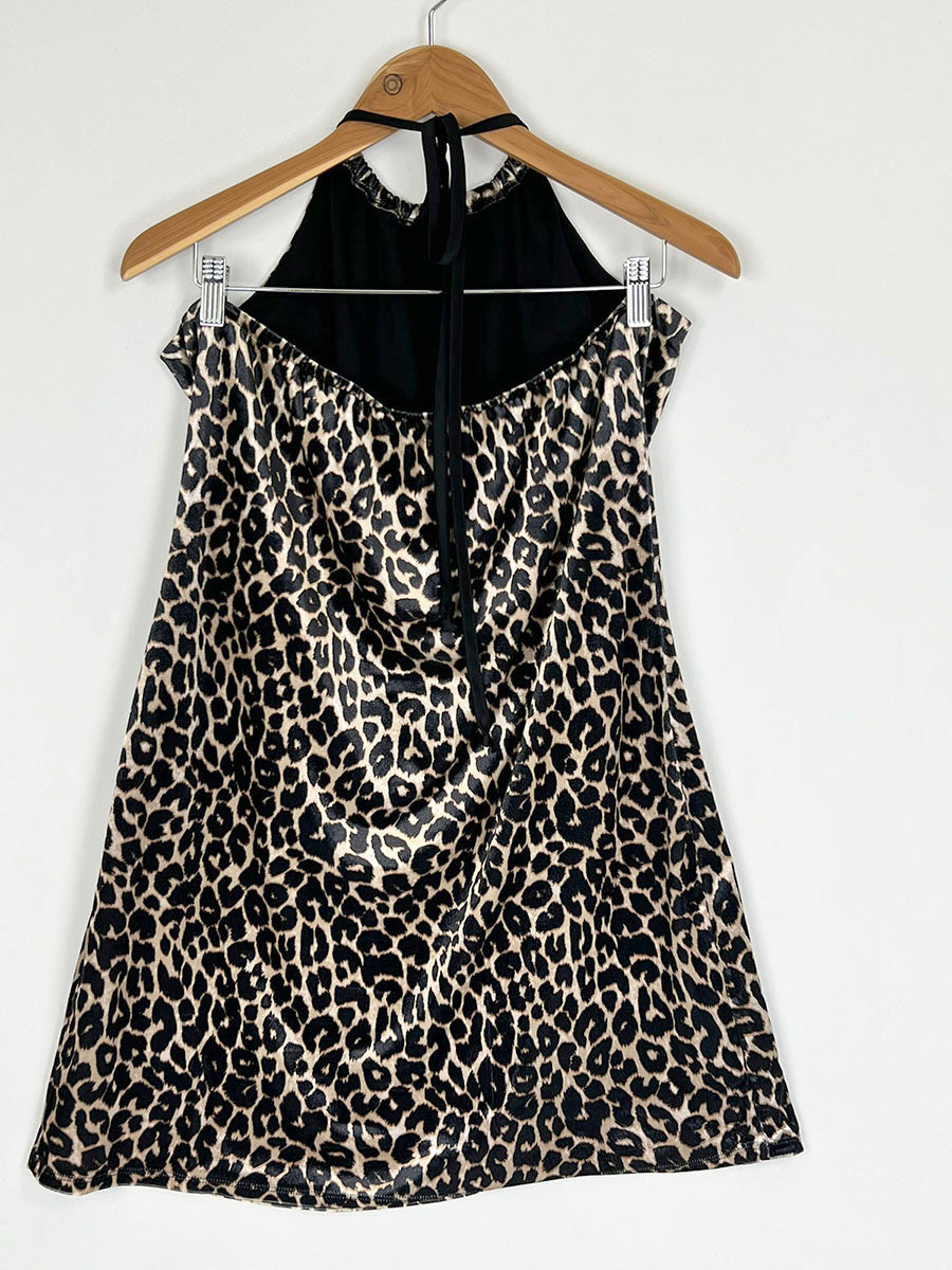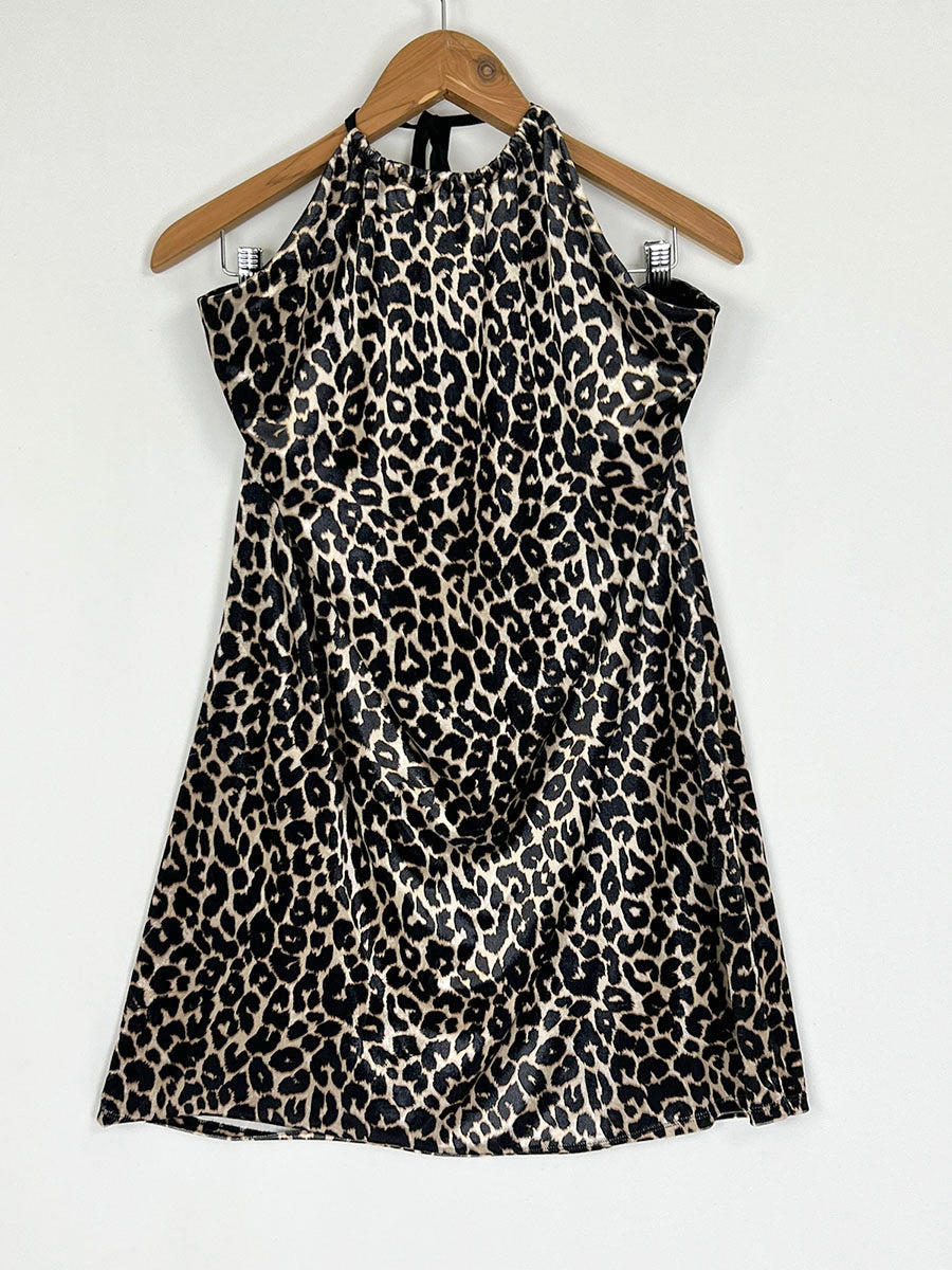 "Leopard Print Sleeveless Halter" mini dress by Wild Fable