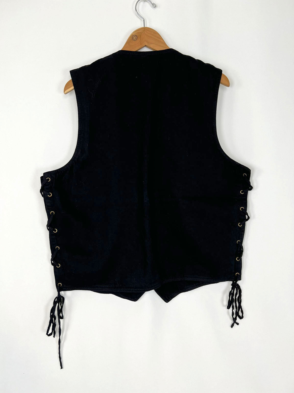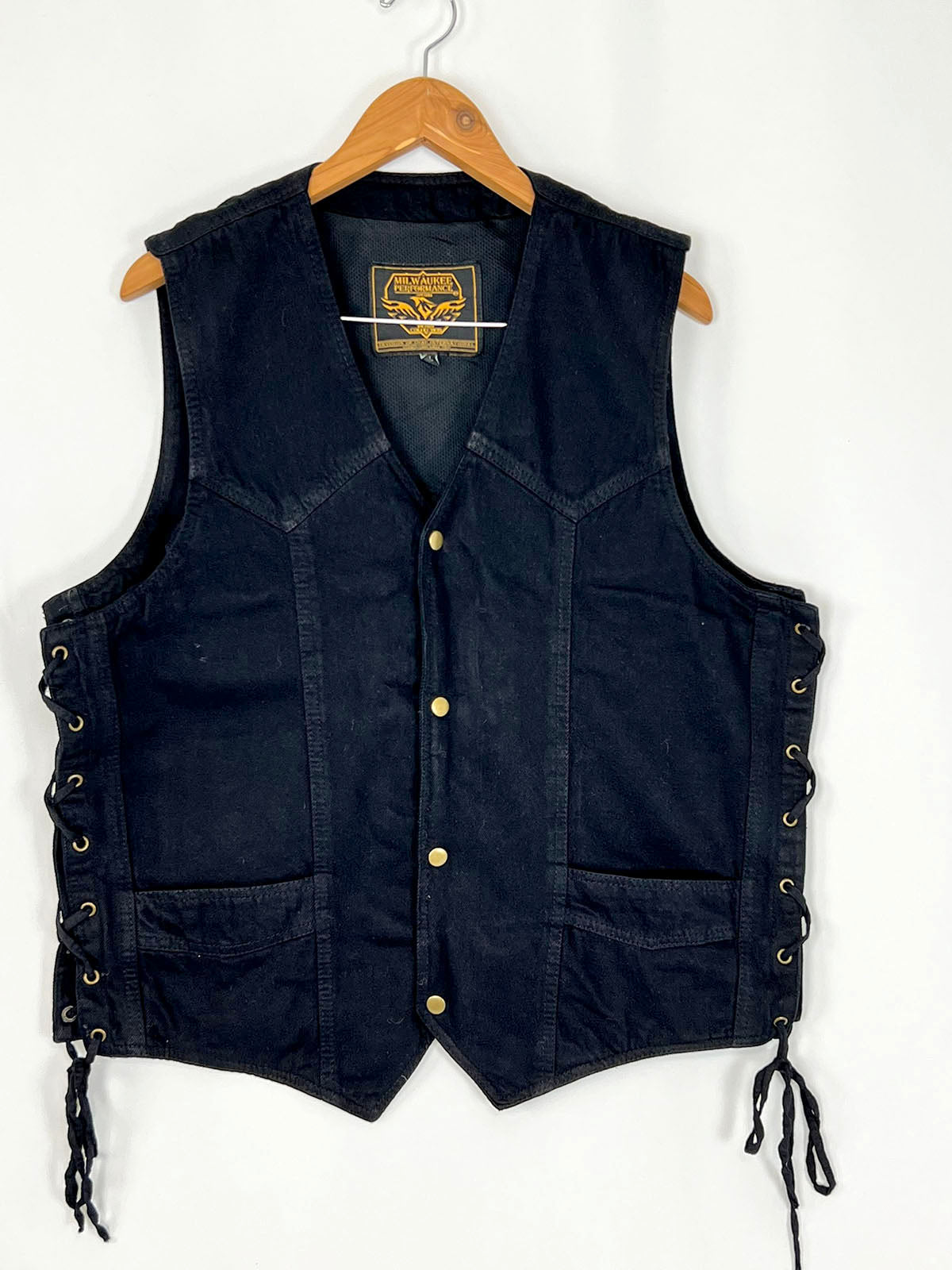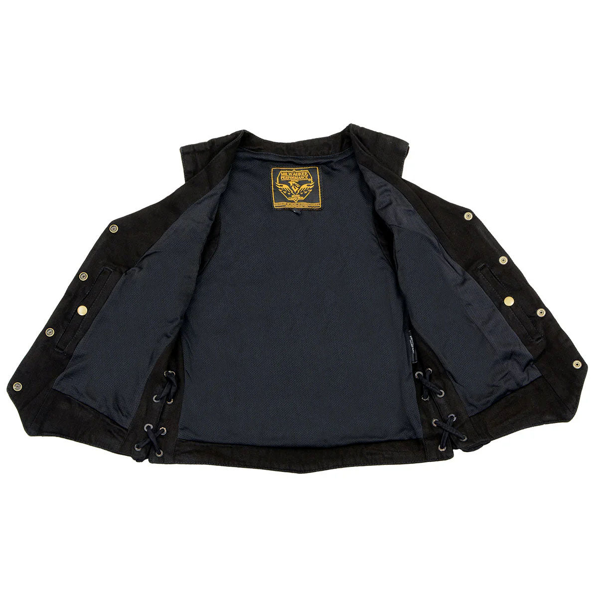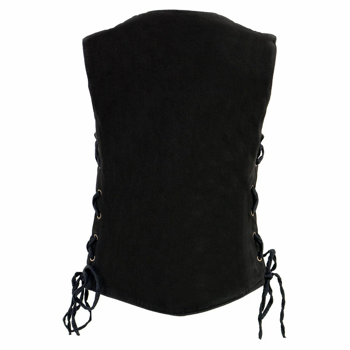 LIKE NEW Milwaukee Leather Women's Black Denim Motorcycle Vest with Side Lace and 4 Snap Front