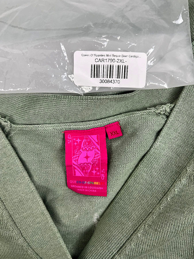 Queen of Sparkles Size XXL Green Multi-Color Reindeer Cardigan Sweater NWT