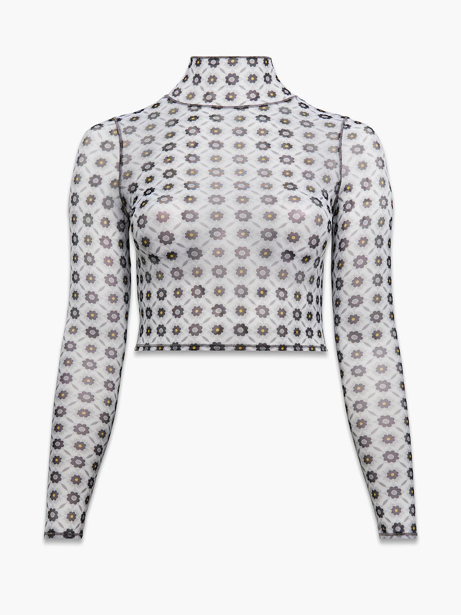 "Mod Cropped Turtleneck Long Sleeve Tee" Find your groove. Our Mod Cropped Turtleneck Long-Sleeve Tee features a smooth mesh fabric and extra-long sleeves for layering.