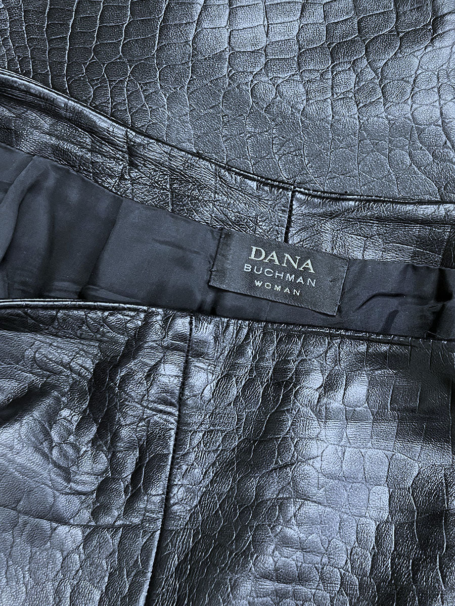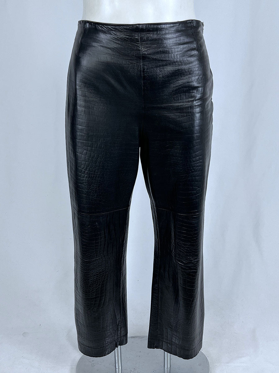 Vintage Dana Buchman Size 14 Black Croc Embossed Leather Pants